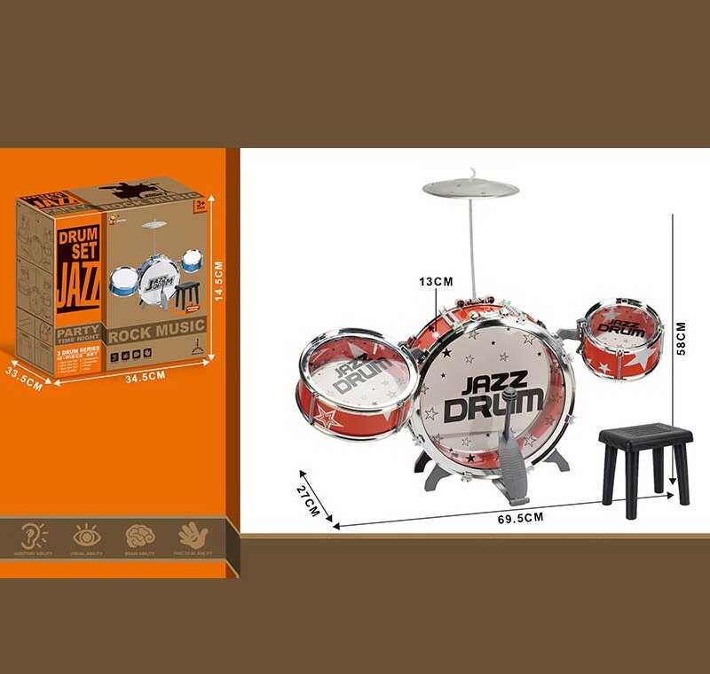 Починаючі музиканти будуть у захваті: справжня барабанна установка у зменшеній версії! Вона точно повторює всі елементи справжнього аналога: чуттєва пластикова мембрана, 2 зручні палички для гри та зручний стілець для маленького музиканта. Легко збірна конструкція дозволить швидко зібрати барабани у єдину музичну конструкцію. Компактні розміри дозволять розмістити музичний інструмент будь-де: в дитячій кімнаті, гаражі або на майданчику біля дома. Барабан сприятиме розвитку відчуття ритму та значно розвинути музикальні здібності дитини.