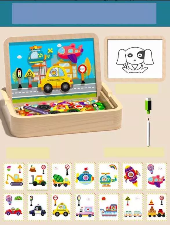 Дерев’яна магнітна двостороння дошка — це чудовий набір для розвитку та творчості. На одній стороні можна викладати магнітні елементи, а на іншій — малювати чи писати маркером “пиши-витирай”. Вона стимулює уяву, дрібну моторику, логічне мислення та робить навчання захопливим і цікавим.