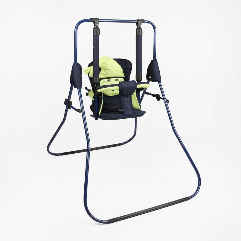 Гойдалка для підлоги ідеально підходить як для будинку, так і для вулиці, обладнана міцним залізним каркасом і м'яким сидінням. Гойдалка компактна у складеному положенні, а спеціальний механізм дозволяє практично одним рухом скласти та розкласти її. Обмежувач та спеціальний механізм оберігають від самовільного складання. Спинка гойдалки регулюється нахилом від 90 до 45 градусів. Також гойдалка обладнана огорожею безпеки та м'якими ручками. Розрахована на вагу до 20 кг. У розкладеному вигляді від ніжки до ніжки 110 см, від сидіння до верхньої точки гойдалки 70 см