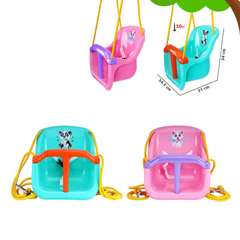 Підвісні гойдалки для дітей, які можна встановити у приміщенні або на вулиці. Додаткова фіксація малюка здійснюється м'яким ремінцем. Також такі гойдалки будуть гарним доповненням до наявної "шведської стінки".