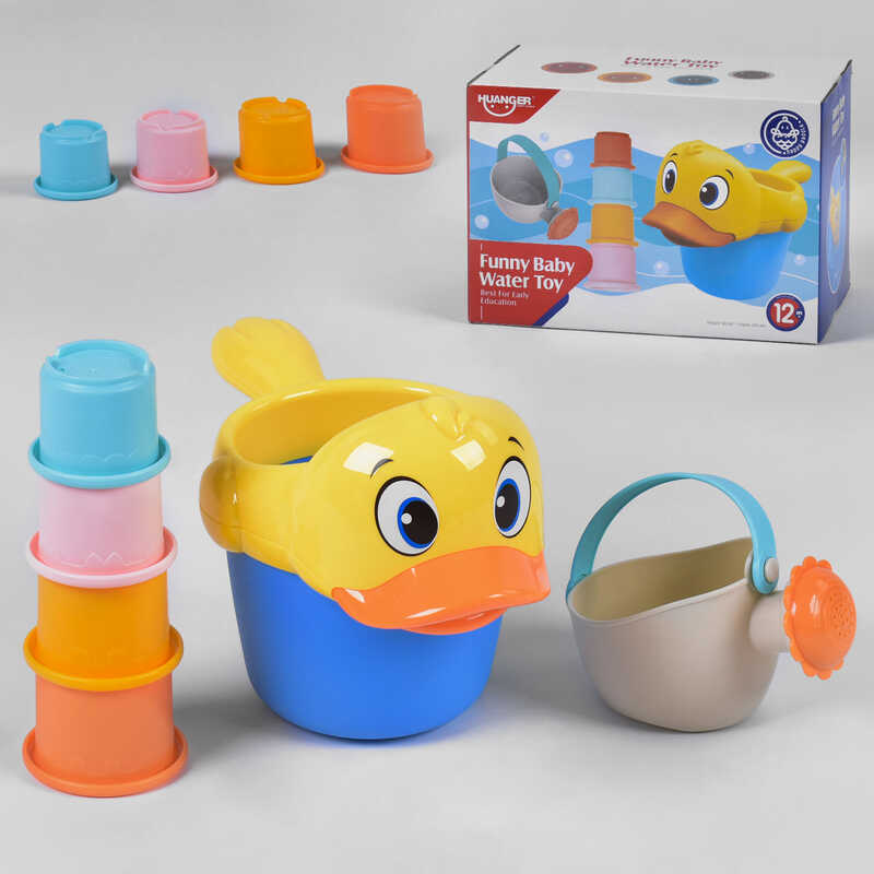 Велике відерце синього кольору йде з вбудованою ручкою-лійкою у формі качки.