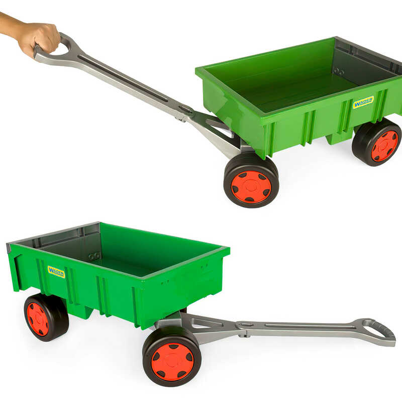 Задня стінка візка відкидається для максимально зручного поводження з вантажем. Довгу ручку для перевезення візка можна приєднувати та від'єднувати. Діти обожнюють перевозити в ньому свої іграшки, пісок, листочки. Візок також дає можливість залучити найменших діток до допомоги у домашніх роботах - перевезення прання, роботи в саду тощо. Іграшка створює додаткові можливості для рухової активності, підтримує розвиток дитини, а також спонукає її до креативності.