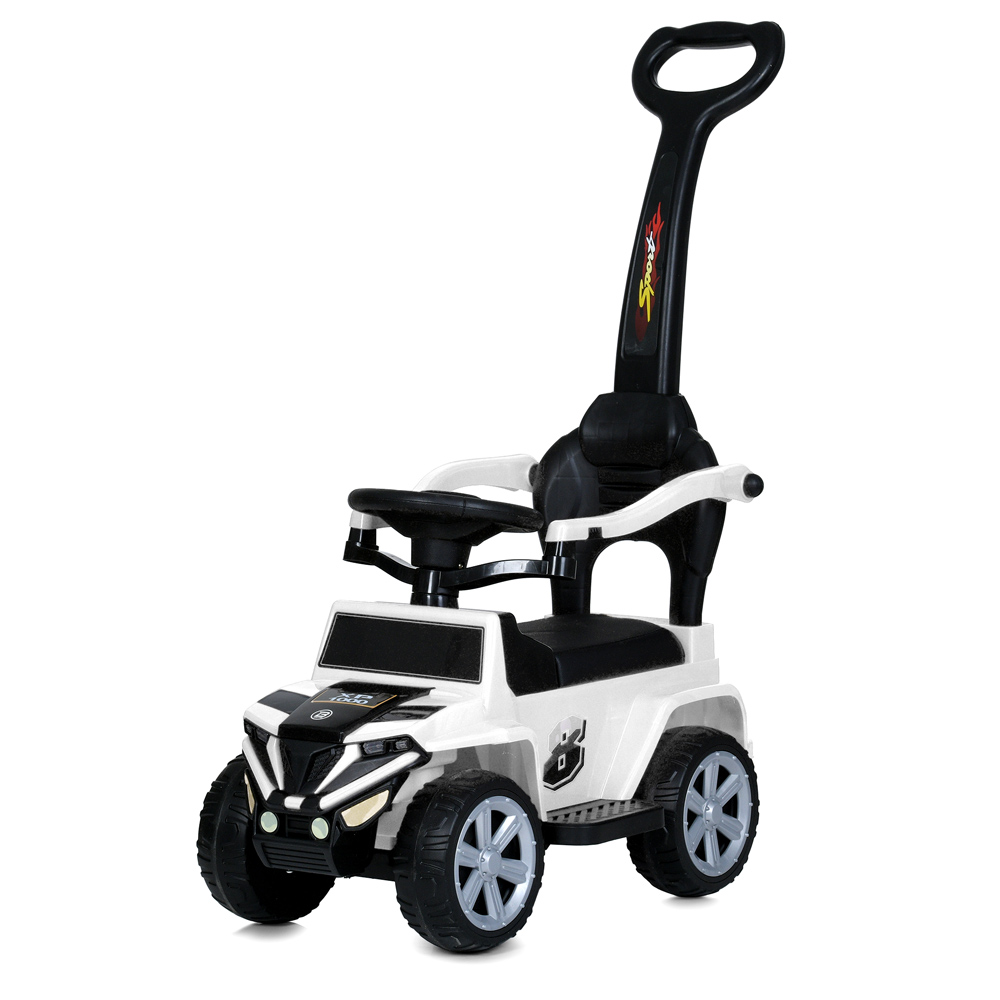 Каталка - толокар M 5805 EL-1 з батьківською ручкою, біла - є стильним і надійним транспортом для маленьких водіїв, виконаний у вигляді справжнього джипа. Ця модель схожа на справжній позашляховик, вона дарує дитині радість руху, допомагаючи розвивати координацію, зміцнювати м'язи ніг та підвищувати витривалість.