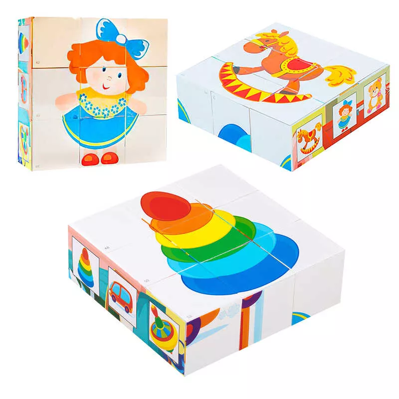 У наборі Ви знайдете 9 кубиків, які потрібно скласти в картинку.