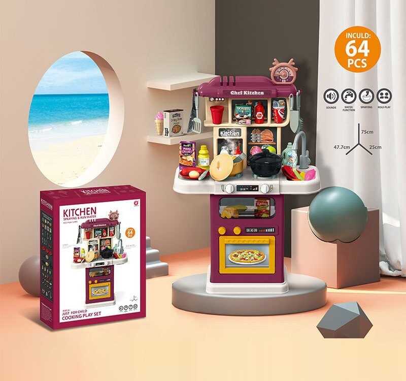 Ця велика дитяча кухня з 64 елементами створена для маленьких шеф-кухарів, які мріють про власний кулінарний простір. Вона реалістична, багатофункціональна й надзвичайно захоплива: дитина може «готувати» страви на плиті, користуватися духовкою, мити овочі у мийці та вигадувати безліч ігрових сценаріїв. Набір має звукові ефекти, функцію подачі води та імітацію смаження, що робить гру ще більш живою та наближеною до справжньої кухні.