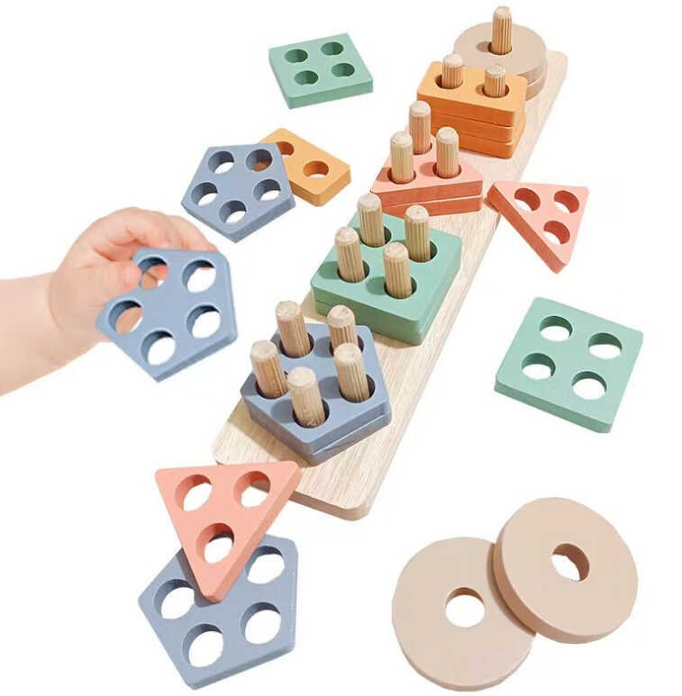 Дерев’яний геометричний сортер — це класична розвивальна іграшка, що допомагає дитині пізнавати форми та кольори. Дитина тренуватиметься розрізняти форми, підбирати елементи за отворами й акуратно нанизувати їх на кілочки, тренуючи координацію, уважність і логічне мислення.