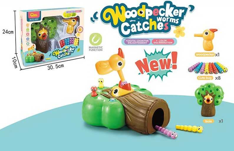 Допоможи пташці нагодувати хробачками маленьке пташеня! “Woodpecker Worms Catches” - чудова магнітна гра, з якою дитина навчиться рахувати від 1 до 8, правильно координувати свої рухи, а також розвиватиме дрібну моторику у цікавому ігровому процесі.