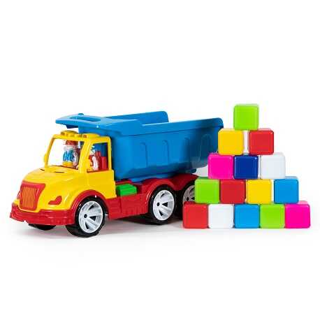 Великий та неймовірно крутий, яскравий та стильний самоскид стане прикрасою будь-якої колекції іграшкового транспорту. У автомобіля великий відкидний кузов, в якому зручно перевозити будь-який вантаж. Машинка укомплектована кубиками 15 шт.