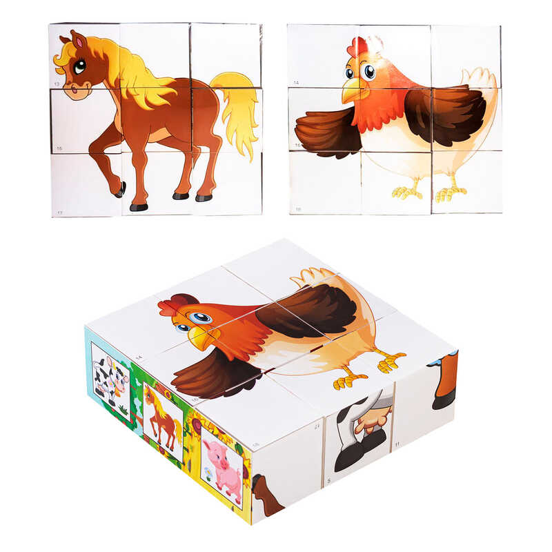 Ігровий набір складається з 9 кубиків, на кожній грані нанесено одну частину цілого зображення.
