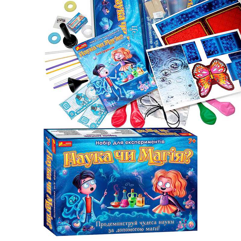 Чарівно-науковий набір дасть дитині можливість у захоплюючій формі пізнати закони фізики. Він містить безліч неймовірних магічних фокусів, заснованих на фізичній науці і її феномени. Ваша дитина не тільки зможе продемонструвати спритність рук і чудеса магії, але і серйозно зацікавитися фізикою! У наборі ви знайдете все необхідне для проведення магічних дослідів, від реактивів до обладнання, а кольорова покрокова фотоінструкція допоможе з легкістю їх виконати.
