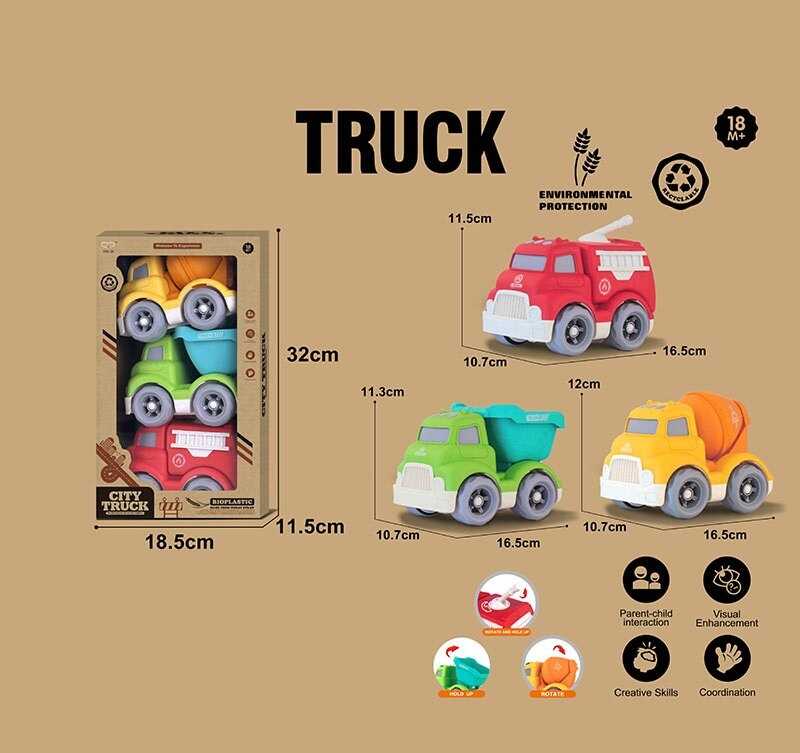 Ці милі машинки створені з турботою про довкілля для активної та захопливої гри малечі. Транспорт виконаний з біопластику, приємного на дотик і безпечного для дитини, тож він ідеально підходить для щоденних ігор.
