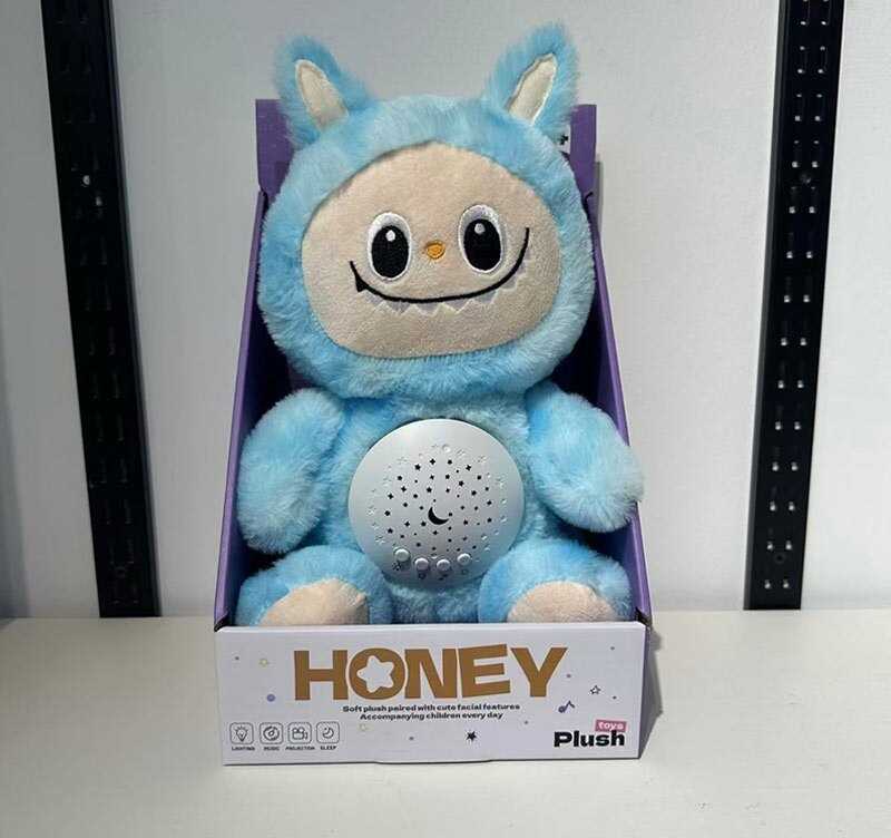 Цей милий герой стане надійним супутником малюка вдень і особливо перед сном! Його м’яке плюшеве тіло приємно обіймати, а ніжне підсвічування та проєкція створюють чарівну атмосферу для розслаблення. Герой вміє відтворювати заспокійливі мелодії, які допоможуть дитині швидше заснути та відчути себе в безпеці. Завдяки регулюванню гучності можна легко обрати найкомфортніший звук для вечірнього ритуалу. Така іграшка подарує малюкові тепло, затишок і казкові сни.