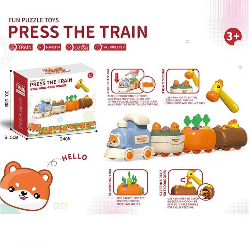 Цей яскравий потяг поєднує одразу кілька цікавих ігор, які захоплюють дитину з перших хвилин! Малюк зможе натискати, стукати молоточком та взаємодіяти з різними елементами на вагончиках. Кожна деталь створена для активної гри та дослідження. Іграшка стимулює рух, увагу та бажання відкривати нове. Чудовий варіант для веселого та корисного дозвілля.