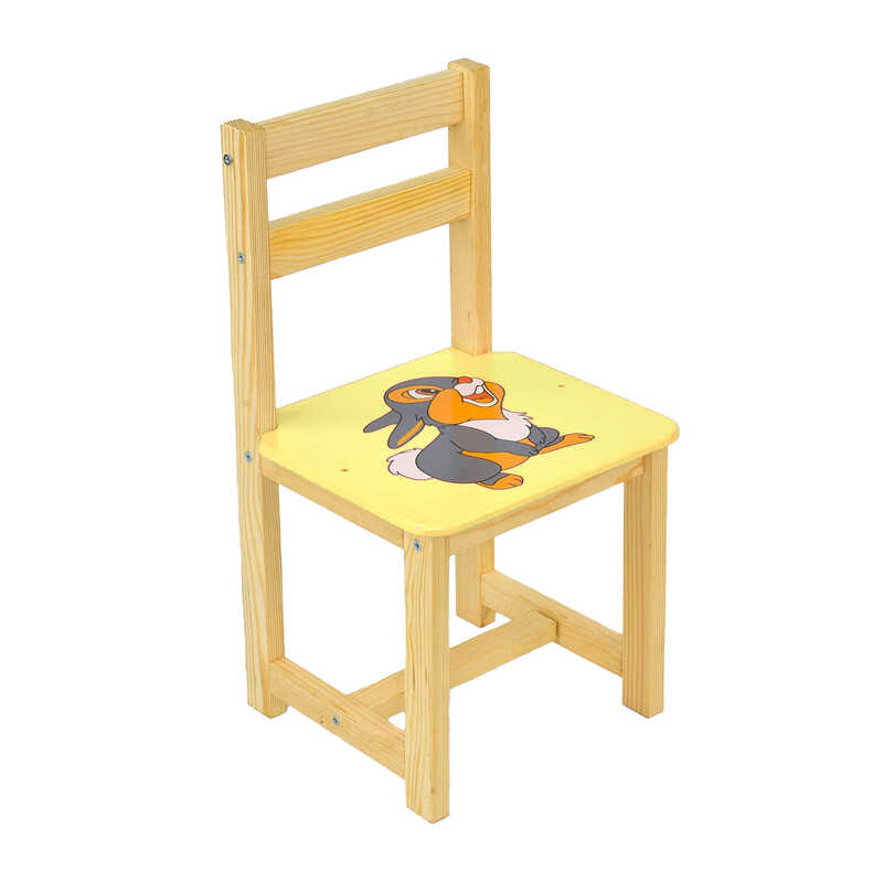 Стілець забарвлений нетоксичною фарбою жовтого кольору із зображенням зайчика.