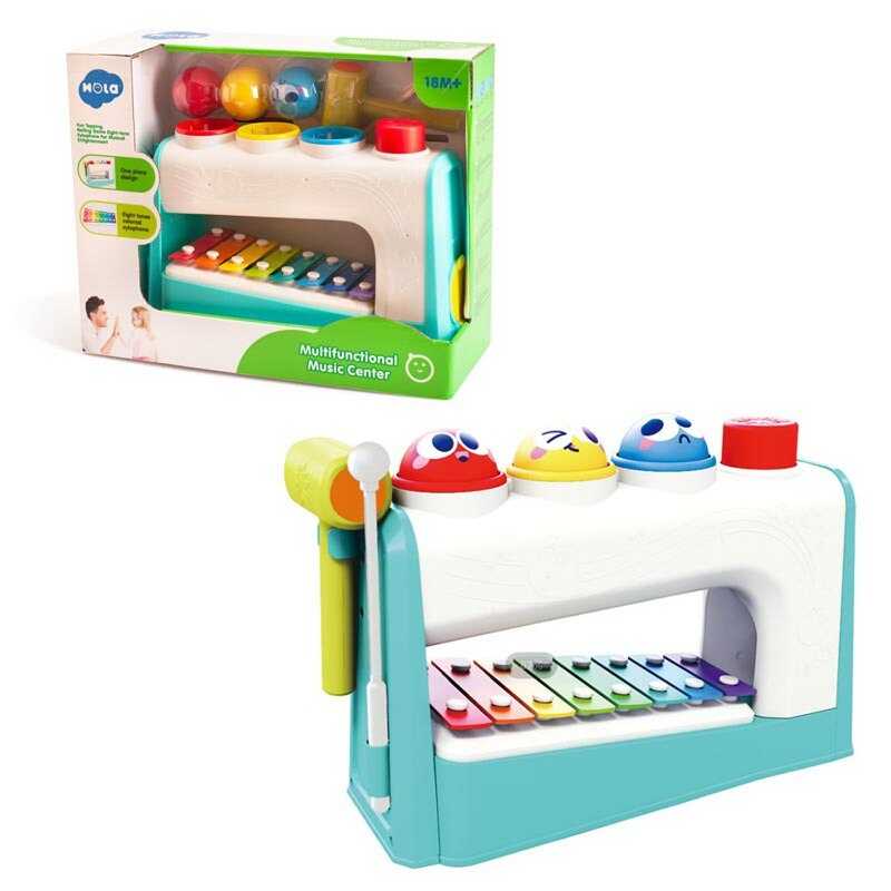 Кольорова стукалка від ТМ "Hola" має одну суперсилу - швидко привернути увагу дитини та затримати її на довгий час. Іграшка виконана у вигляді швейної машинки та містить 2 забавки: стукалку та ксилофон. Виробнику "Hola" вдалось не тільки гармонійно поєднати 2 різні ігри, а зробити так, щоб вони взаємодіяли: кольорові кульки падають прямо на ксилофон, утворюючі мелодійні звуки.