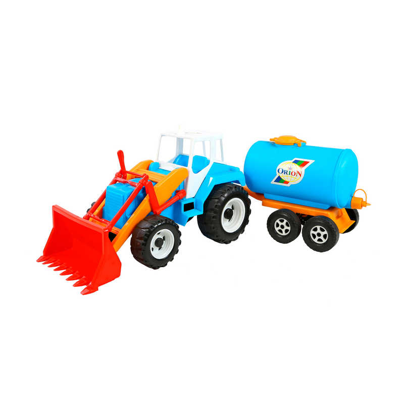 Іграшка зроблена з пластмаси. Ківш на екскаваторі підійматися. Цистерна знімна з можливістю затоки води.