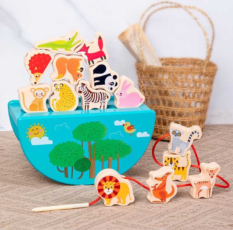 Кожна тваринка має свій розмір, форму та вагу, тож малюк вчиться прораховувати баланс, тренує уважність і акуратність.