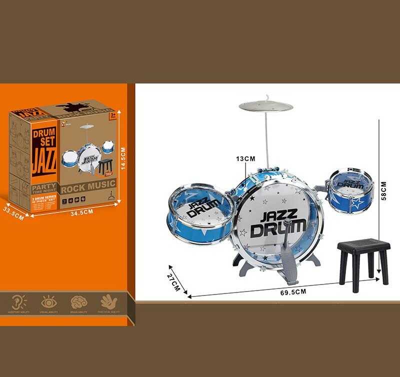 Починаючі музиканти будуть у захваті: справжня барабанна установка у зменшеній версії! Вона точно повторює всі елементи справжнього аналога: чуттєва пластикова мембрана, 2 зручні палички для гри та зручний стілець для маленького музиканта. Легко збірна конструкція дозволить швидко зібрати барабани у єдину музичну конструкцію. Компактні розміри дозволять розмістити музичний інструмент будь-де: в дитячій кімнаті, гаражі або на майданчику біля дома. Барабан сприятиме розвитку відчуття ритму та значно розвинути музикальні здібності дитини.