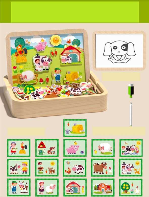 Дерев’яна магнітна двостороння дошка — це чудовий набір для розвитку та творчості. На одній стороні можна викладати магнітні елементи, а на іншій — малювати чи писати маркером “пиши-витирай”. Вона стимулює уяву, дрібну моторику, логічне мислення та робить навчання захопливим і цікавим.
