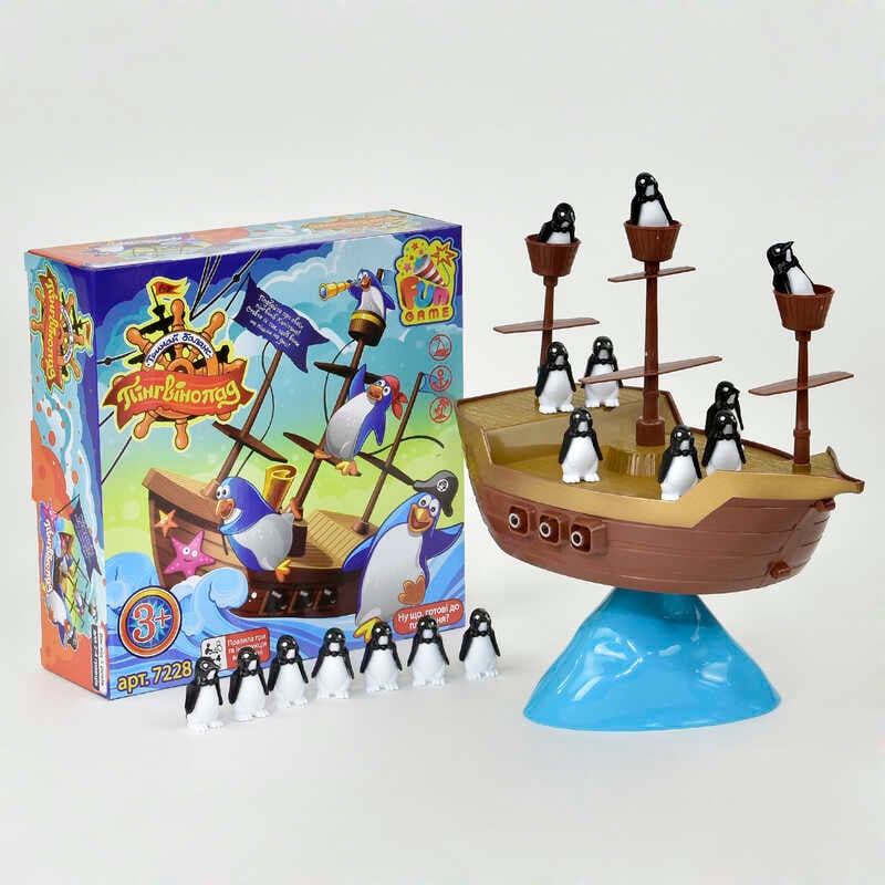 Настільна гра «Тримай баланс. Пінгвінопад »7228 - це кумедна гра із захоплюючим сюжетом, який змусить кожного гравця стати капітаном корабля і вдало зібрати команду для морської подорожі, зберігши в цілісності екіпаж і сам корабель!