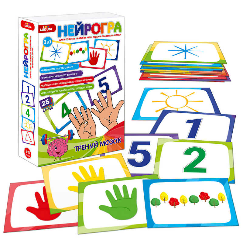 Набір розвиваючих карток Нейроігри складається з 3 різнопланових завдань, які: