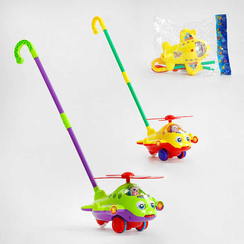 Каталка з ручкою виконана у вигляді веселого гвинтокрила з великими лопастями, яскравого і барвистого кольору, всередині якого знаходиться невелике брязкальце, а коли малюк везе іграшку, лопасті у гвинтокрила обертаються, моргають оченята і висовується язик, іграшка дуже схожа на потішного персонажа з мультика. Каталка з ручкою дозволяє вашому малюку розвивати координацію, робить його більш впевненим при ходьбі, також іграшка дуже цікава і корисна. Коли малюк везе іграшку, вона голосно дзвенить, а це для маленької дитини дуже смішно. Каталки з ручкою прикрасять будь-яку прогулянку зі своєю дитиною і нададуть корисну дію на розвиток просторових навичок.