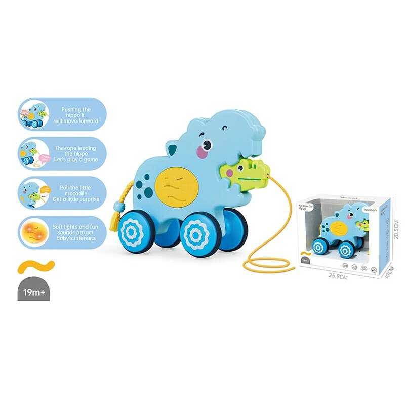 Іграшка виконана у формі милої тваринки, яка має рухливі елементи. Колеса каталки мають гумове покриття для ліпшої стійкості іграшки під час гри.