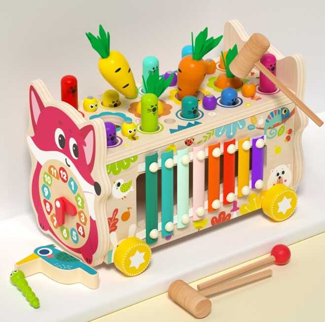 Вона допоможе дитині весело проводити час і водночас тренувати логіку, координацію, уважність і музичний слух. Іграшку можна катати, а також грати з ксилофоном, годинником та з ін. елементами.