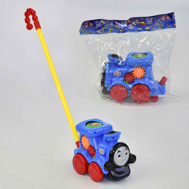 Основа каталки 0375 виконано у вигляді веселого паровозика Томаса з мультфільму. Завдяки великим колесам малюкові буде легко його котити, а кумедні шестерінки та звуки будуть його розважати, утримуючи надовго увагу.