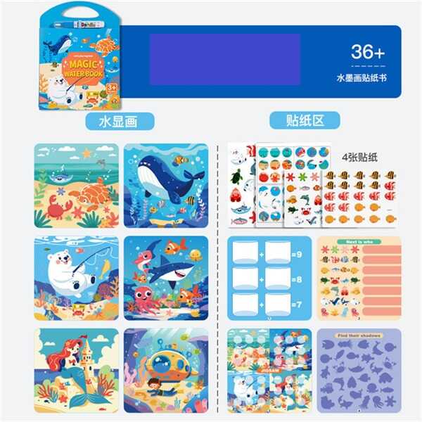 - у комплекті водна ручка, книжка для малювання та наклейки;