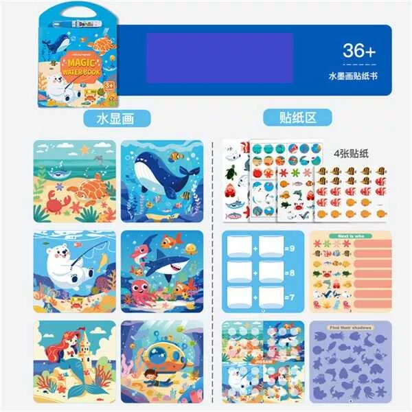 Магічна водна книга з наліпками — це неймовірно цікава й безпечна розвага для малюків! Варто лише наповнити ручку водою й провести по сторінці — і з’являться яскраві сюжети. Коли сторінки висихають, малюнки зникають, і дитина може розмальовувати знову й знову.