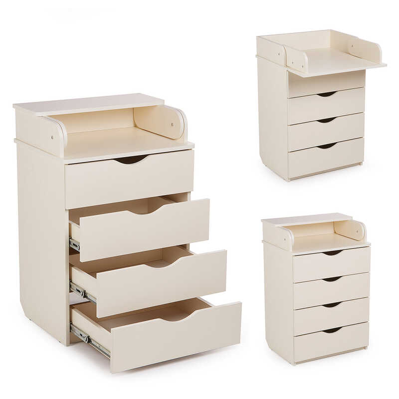Дитячий KOMOD – ідеальне рішення цього питання. Він не займає багато простору та характеризується чудовою місткістю. В його чотирьох ящиках знайдеться місце для всього необхідного. Верхня частина комоду легко відкидається та перетворюється в зручний пеленальний столик, який за необхідності знімається. А заокруглені бортики дозволять безпечно переодягнути малюка.