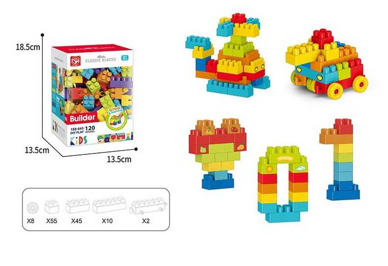 Одна з найкорисніших забавок для розвитку логічного й фантазійного мислення! Іграшковий набір дуже включає 120 деталей з пазовим типом кріплення, які відрізняються за кольором. Кількість фігурок, які можна скласти - не обмежена. До комплекту входить кольорова інструкція, яка пропонує кілька цікавих варіантів, а далі - залежить від фантазії дитини.