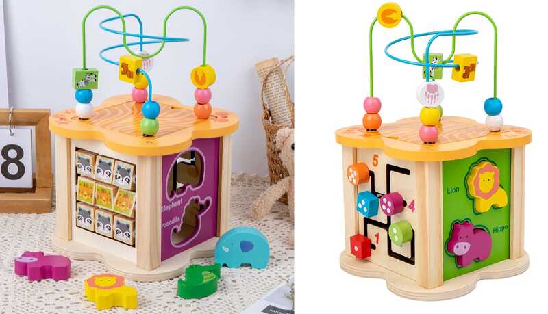 Цей багатофункціональний дерев’яний куб запрошує малюка до світу цікавих завдань та веселих відкриттів! Кожна грань іграшки дарує нову активність: від сортування тваринок і вивчення англійських слів до ігор з пальчиковими лабіринтами та годинником. Дитина з задоволенням досліджуватиме кольори, форми й механізми, а ігровий процес непомітно перетвориться на розвиток важливих навичок.