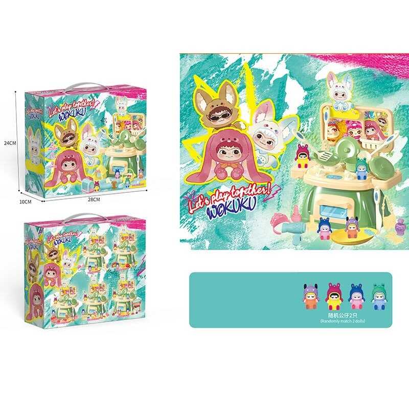 У комплект входить кухонна плита з поличками, а також набір продуктів і посуду: тарілочки, каструля, сковорідка та інші аксесуари, що дозволяють відтворювати справжні побутові ситуації.