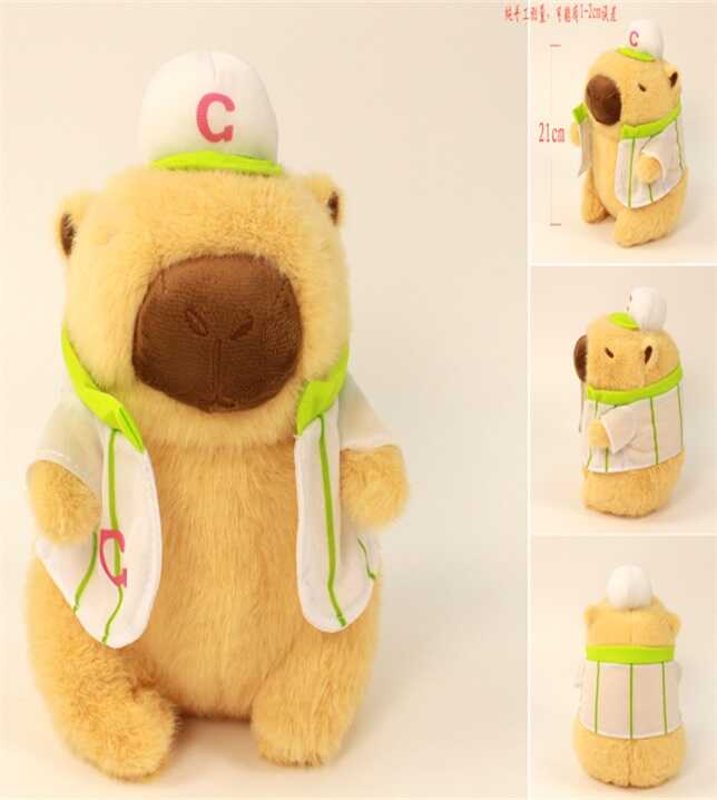 М’яка іграшка у вигляді капібари у формі для гри у бейсбол стане оригінальним подарунком для дитини або доповненням до колекції плюшевих друзів. Вбрана у біло-зелений жилет і кепку, вона виглядає надзвичайно стильно та кумедно. Іграшка виготовлена з м’якого приємного на дотик текстилю, що забезпечує комфорт під час обіймів. Завдяки щільному наповненню капібара добре тримає форму.