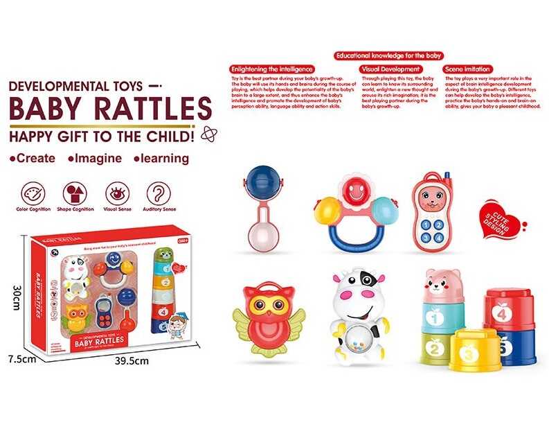 Цей набір брязкалець стане чудовим першим ігровим комплектом для малюка! Різні форми, кольори та текстури заохочують дитину торкатись, трясти, натискати й досліджувати кожну іграшку. Брязкальця легко тримати маленькими ручками, вони безпечні та створені для розвитку сенсорики, уваги й координації. Набір підійде як для самостійної гри, так і для веселих занять разом із батьками.