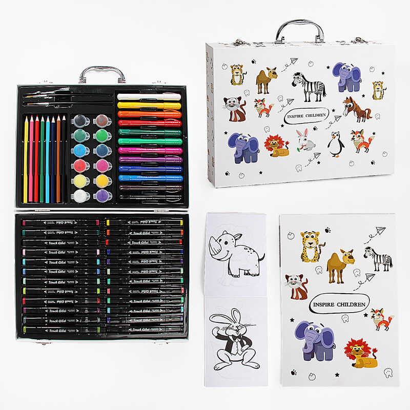 Набір для малювання включає все необхідне для створення справжніх шедеврів живопису! Він стане чудовим подарунком для дитини, яка полюбляє малювати та експериментувати з кольором та формою. Стильний металевий кейс допоможе зручно зберігати складові набору та легко знайти потрібний інструмент. Всередині ви знайдете фломастери, олівці та фарби у широкій колірній гамі.