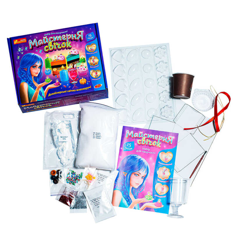 Усі необхідні складові для створення свічок містяться в наборі, а процес виготовлення детально поданий в покроковій фотоінструкції. Цікаво як дітям, так і дорослим!