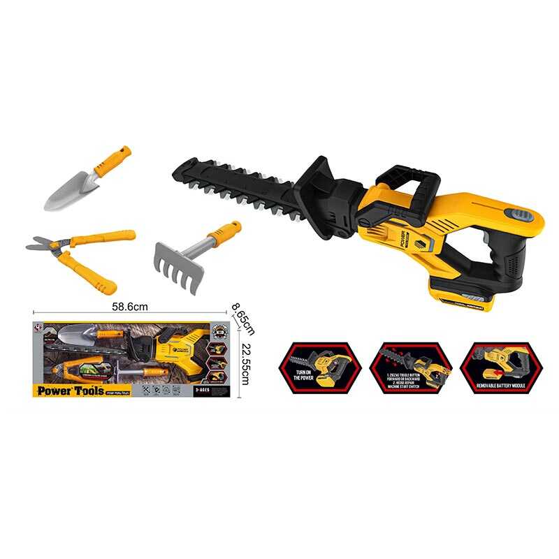 Аби інструменти були під рукою, а робота завжди знайдеться! У садовому наборі є все, що знадобиться юному садівнику: кущоріз, садові ножиці, лопатка, граблі. Завдяки автоматичному принципу роботи та реалістичному деталізованому дизайну іграшковий кущоріз на вигляд нічим не відрізняється від справжнього. Іграшка відтворює характерний звук, має рухливі елементи та є цілком безпечною для дитячих ігор.