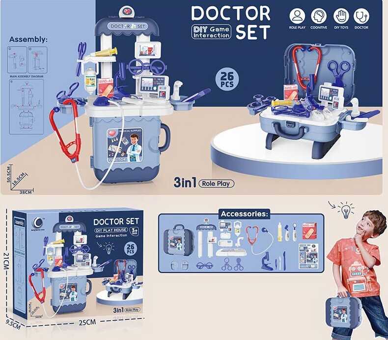 Ігровий набір “Doctor Set” пропонує допитливим непосидам, що цікавляться медичною тематикою, приміряти на себе професію лікаря.