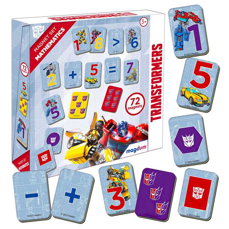 Магніти із зображеннями улюблених персонажів з мультфільму “Трансформери” відкриють дитині дивовижний світ математики та познайомлять з базовими знаннями. Під час гри дитина розвиватиме пам’ять, логічне мислення, дрібну моторику рук та увагу.