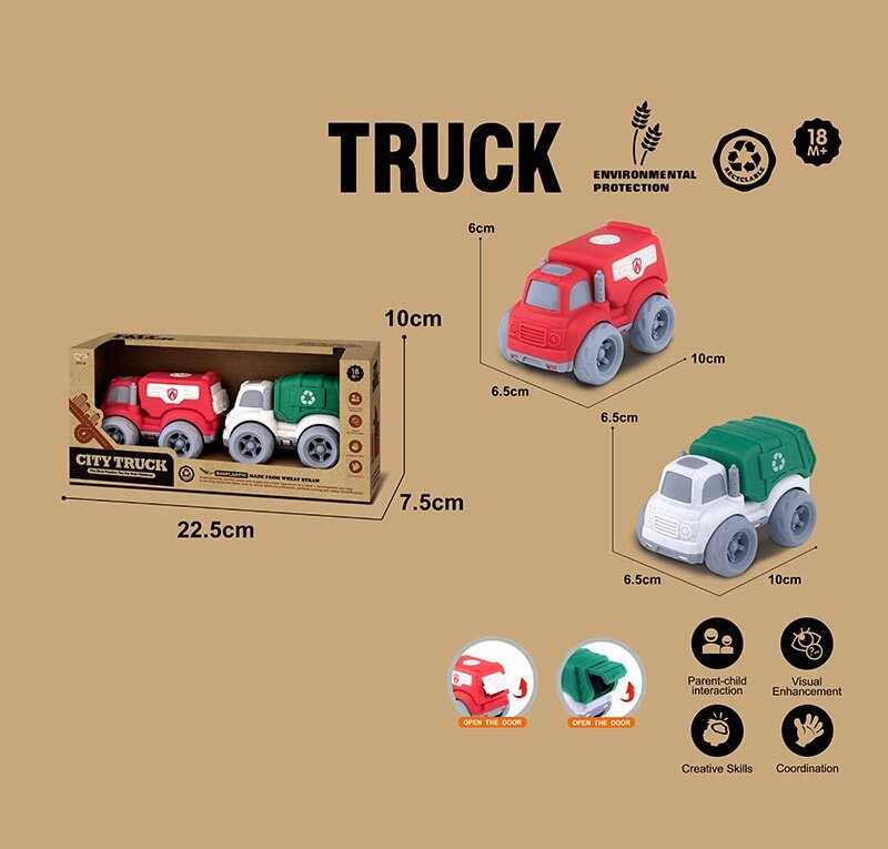 - 2 машинки у вигляді спецтехніки: пожежна машина, сміттєвоз;