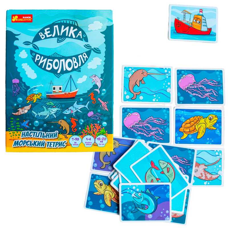 Врятуй мешканців океану з браконьєрської сітки у грі «Велика риболовля»! Це яскрава настільна гра в стилі тетрису для 1–4 гравців. Складай зграї з однакових морських тварин, застосовуй їхні суперздібності, прибирай сміття і спостерігай, як карти «падають» у сітку — як у тетрисі! Грай на швидкість, логіку й кмітливість.