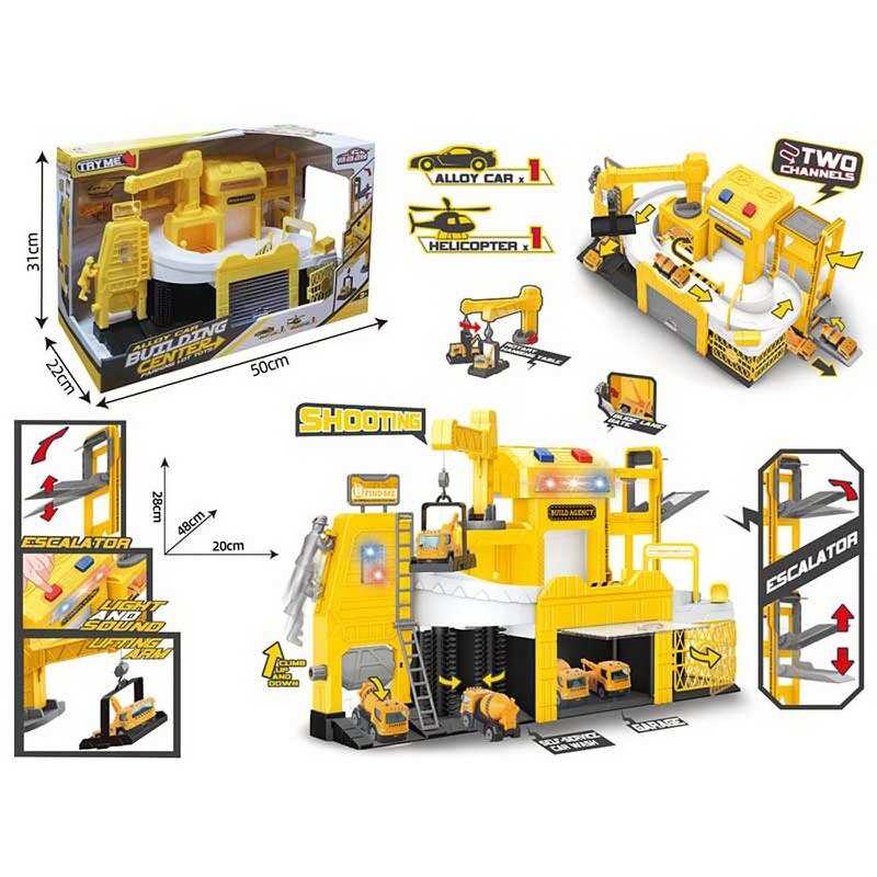 Велика парковка — це ціла станція для захопливих ігор! Вона має рухомі елементи, трек, механічний підіймач та рухомий кран. Крім цього, в комплекті ви знайдете металопластикову машинку та гелікоптер, а звукові ефекти та підсвічування зроблять гру цікавою та реалістичною. Ідеальний подарунок для маленьких рятувальників!
