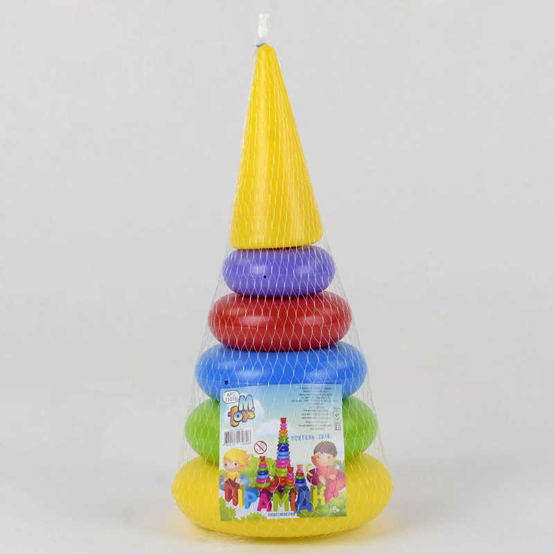 Пірамідка допомагає дітям формувати навички розпізнавання кольору, розміру і форм.