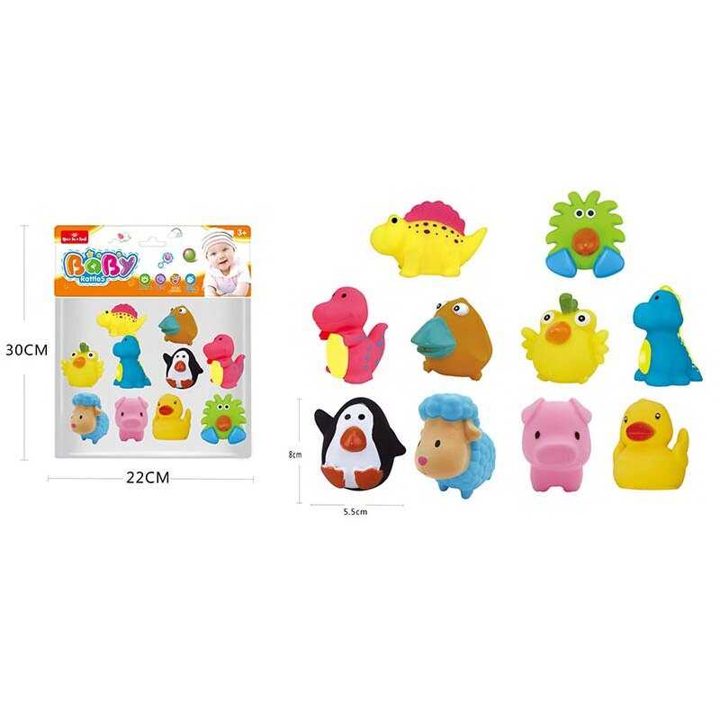 Перетворіть час купання на веселу гру для своєї дитини разом із цим яскравим набором гумових іграшок! Іграшки виконані у формі милих тваринок у яскравій мультяшній стилізації, тому обов’язково привернуть увагу малюка. Кожна іграшка виконана з м’якої фактурної гуми, яку дитині буде легко втримати у маленьких ручках.